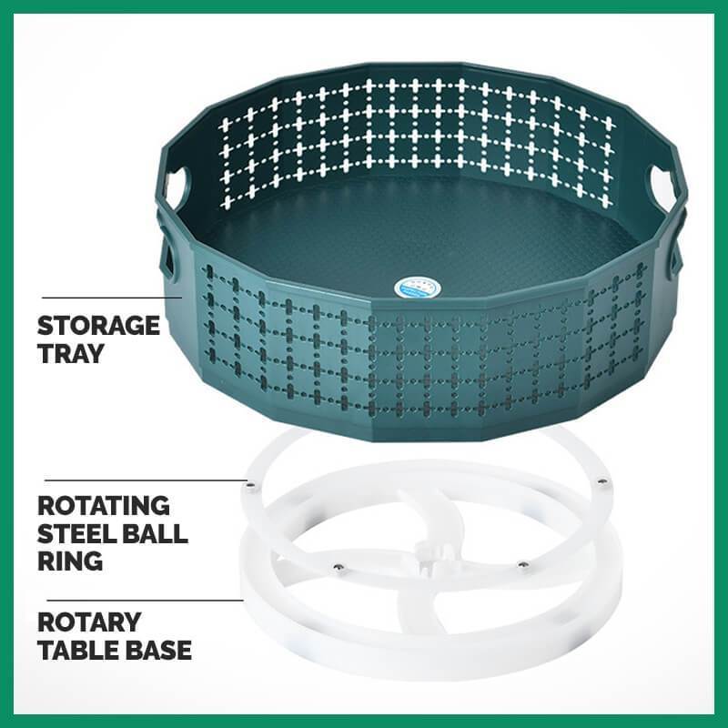 Premium Durable Construction This lazy turntable is made with superior quality, highly durable eco-friendly materials, with heavy-duty reliable handles, non-slip TPR mat and non-skid base, lazy organizer being easy to wash and guaranteed to last for many years!