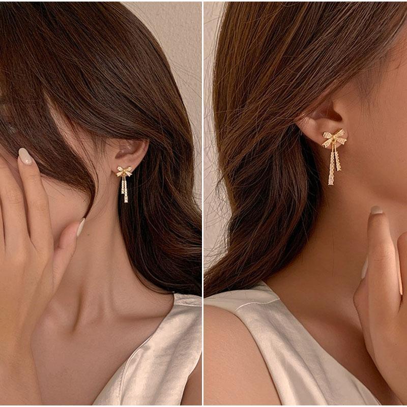 [Sophisticated & Romantic] These bow motif earrings combine the precision and quality of sparkling crystals with a meaningful symbol of love; a great gift for you or someone special.