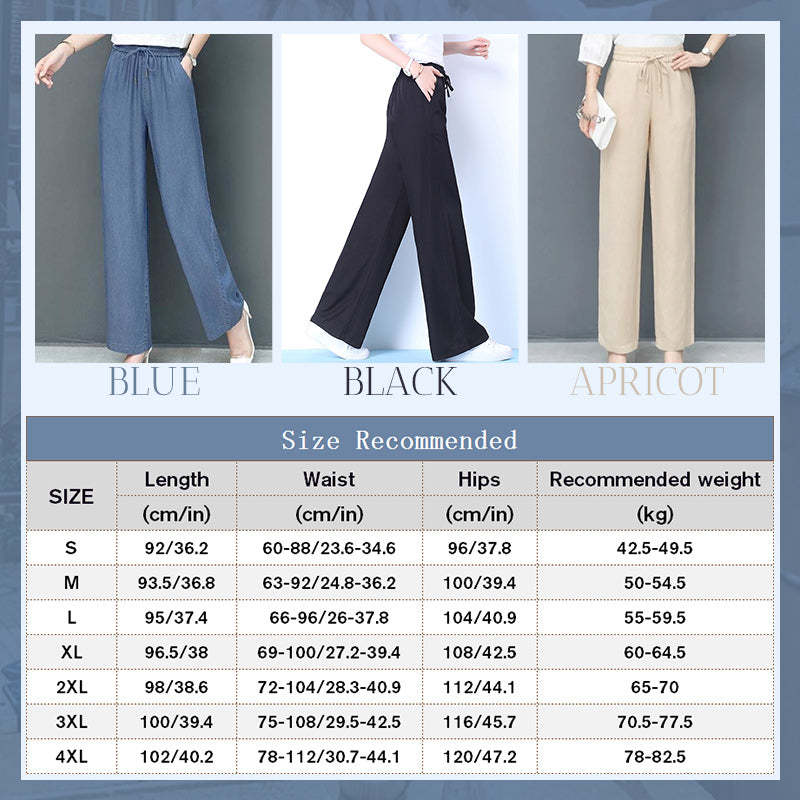 The loose design well conceals fat on the leg, making your leg look slim and slender. Wide straight leg, suitable for all women.