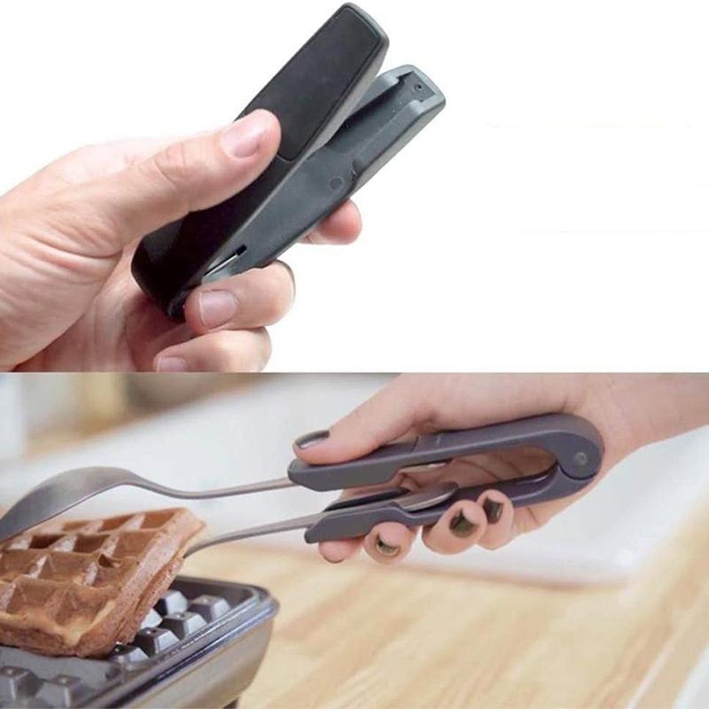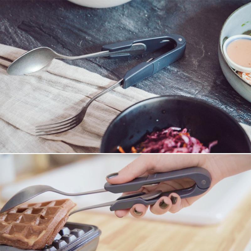 Spoon and fork clamp instantly turns your flatware into versatile kitchen tongs.