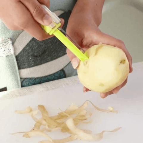 This is not just a scallion cutter! It can also be used for quick peeling. It saves you the cost of a separate paring kni-fe while saving kitchen space. It is a good choice for all housewives!