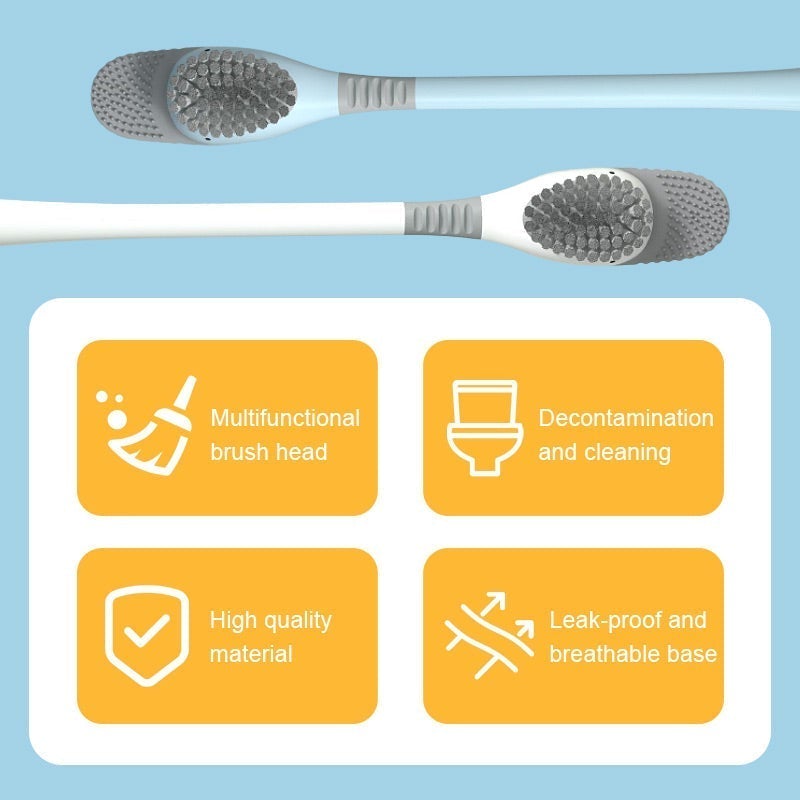 Using soft and elastic TPR material, it can be bent at will. The curved surface adjusts the brush head, 360° cleans, penetrates into the toilet gap, and quickly and thoroughly removes stubborn stains on hard-to-reach corners.