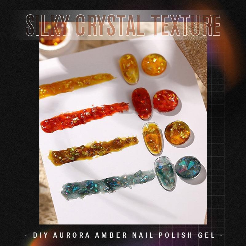 DIY Aurora Amber Nail Polish Gel is the most fancy, fashionable and shiny nails with a unique crystal amber texture.
