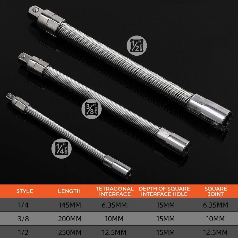 Tightly coiled steel springs allow you to reach awkward angles with up to a 45 ° angle while maintaining great rotational torque transfer. Make your installation work more flexible, comfortable, and efficient.