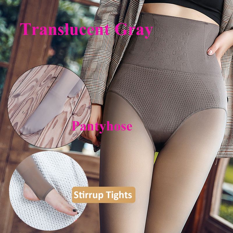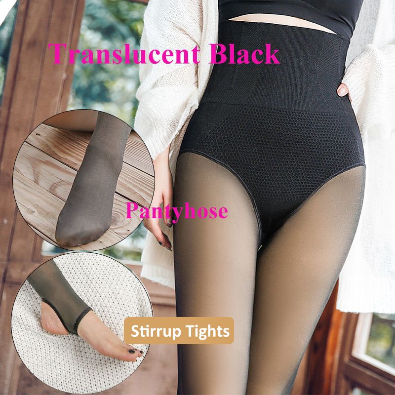 It has two layers for an ultimate warm feeling. The first layer looks fashionable as transparent stockings and goes with every outfit. The second layer is nude fleece which effectively warms your legs.