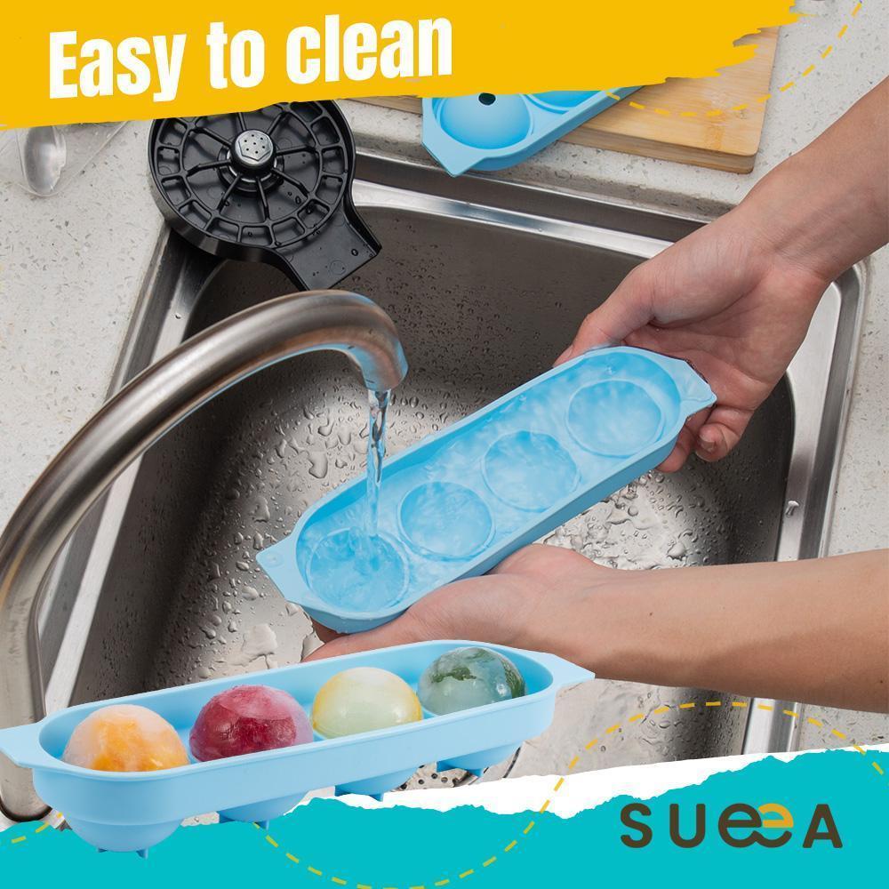 Unlike hard plastic hockey trays, our flexible round ice cube mold is made of durable silicone. These sphere ice cube molds make it easy to twist or push the ice from the bottom for easy release.