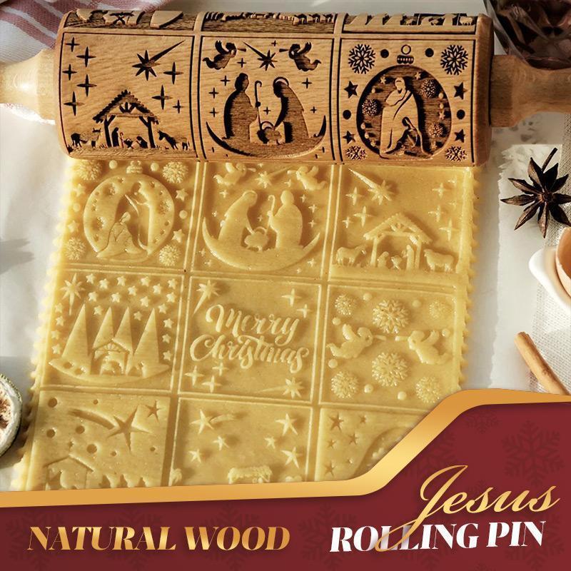 Jesus Scene Pattern: The rolling pin has clear patterns, including snowflakes, stars, vines, and nativity scenes. It is engraved with a laser. The carving depth is about 1.2mm, which perfectly presents the Christmas atmosphere.