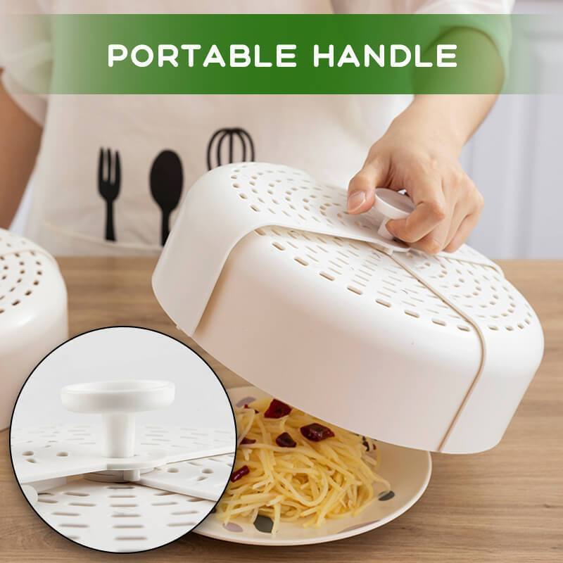 This Table Leftovers Protector has a foldable design, covers a large area, hollowed out design, breathable and not easily spoiled, perfect for the family table, kitchen.