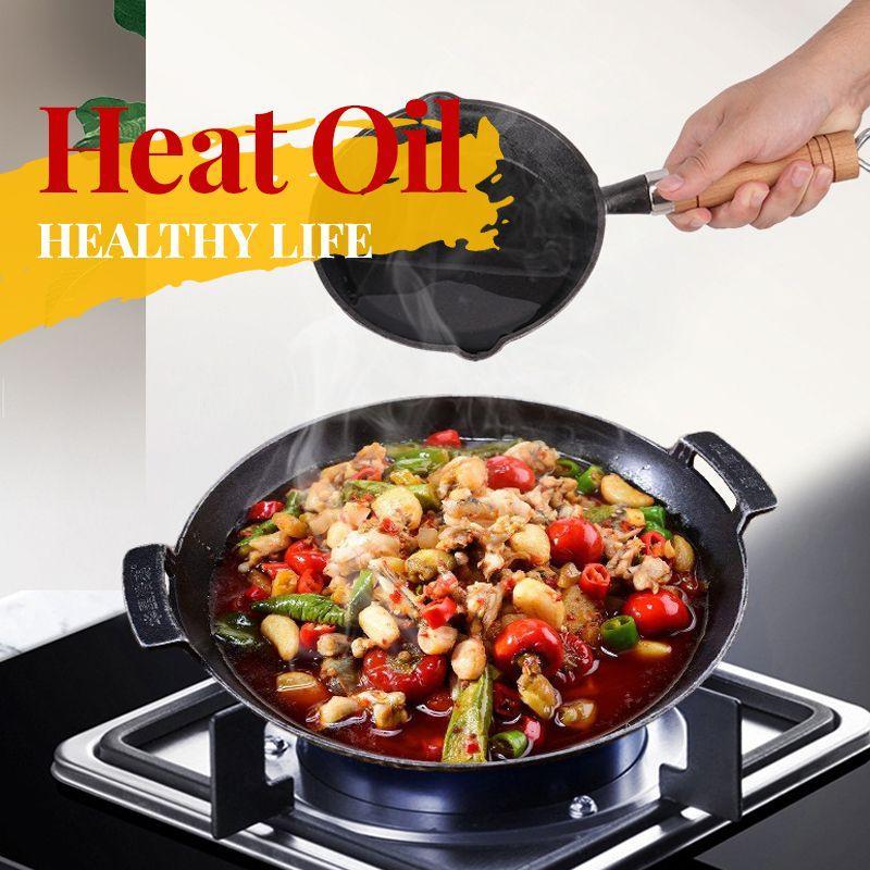 Special casting iron pores on the surface of cast iron pan can absorb oil and form a healthy protective layer, which makes the pan nonstick and less oil smoke.