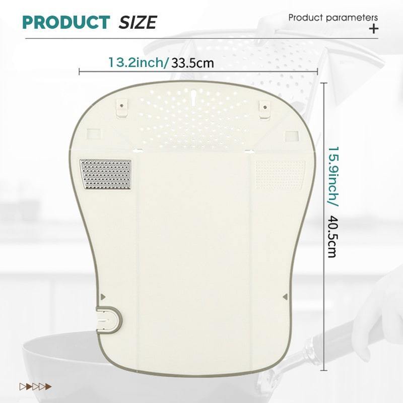 It is only 33.5*40.5cm/13.2*15.9inch, and a multifunctional cutting boards can replace cutting board, grinder, vegetable washing basket, storage basket and sharpening stone. Make your kitchen more tidy, effectively saving you money, time and space.