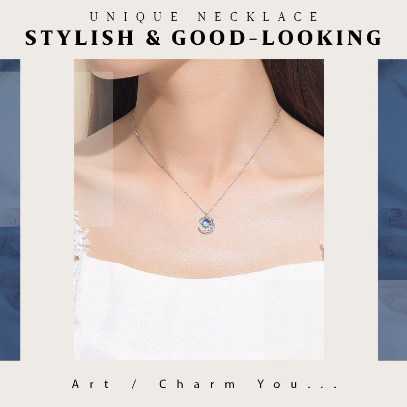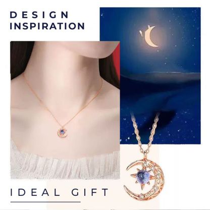 ✦ The blue starry gem sparkles as it sits in the crescent (diamond inlaid), making the necklace simple yet elegant. It is a classic necklace for every woman!