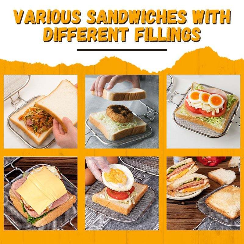 Not only can it be used to make sandwiches, but it can also be used for outdoor barbecues, baking roast, chicken wings, vegetables, etc. Portable design for easy use in outdoor barbecues. Folding storage does not take up much space.