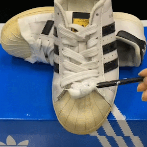 Unlike other products that whiten shoes by covering, it removes yellow dirt by chemical reaction, restoring its true color essentially.