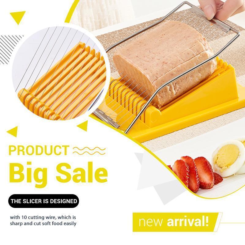 MULTIFUNCTIONAL MANDOLINE SLICER Works equally well for a boiled egg, luncheon meat, peeled pitaya, peeled Kiwi, ham, etc. The possibilities of what you can slice are endless! Make delicious toasts with cold cut meats and soft cheese slices. Slice bananas for fruit salads and desserts. Slice roast meats for impressively served dishes.