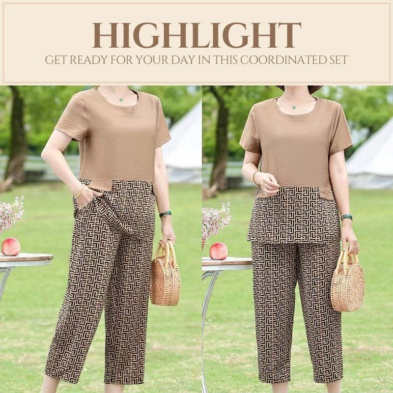 Our two-piece t-shirt suit brings you no-fuss ease and an all-in-one amazing look. With a flattering round neckline design and super comfy pants come with a full elastic waist. Throw this coordinated set on and you're ready for wherever your day takes you.