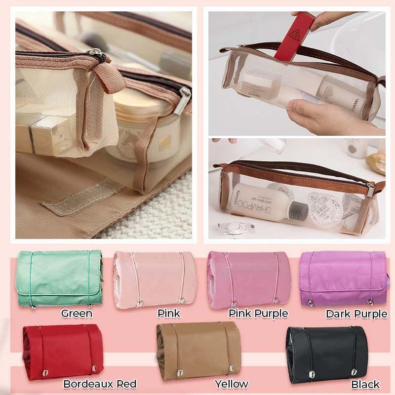 This toiletry bag can be rolled up and secured for easy carrying, making it ideal for travel, vacation, business trip, gym, camping, or daily storage.