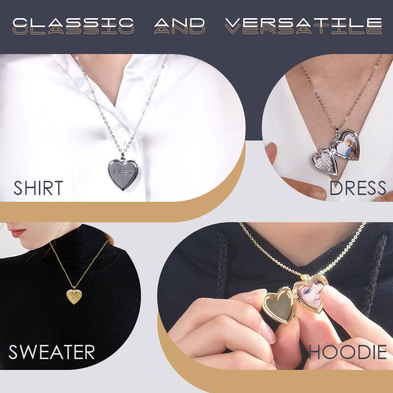 ▶ LOCKET NECKLACE WITH PHOTO BOX A pendant necklace with a photo box that opens and closes to hold a photo of your loved one.