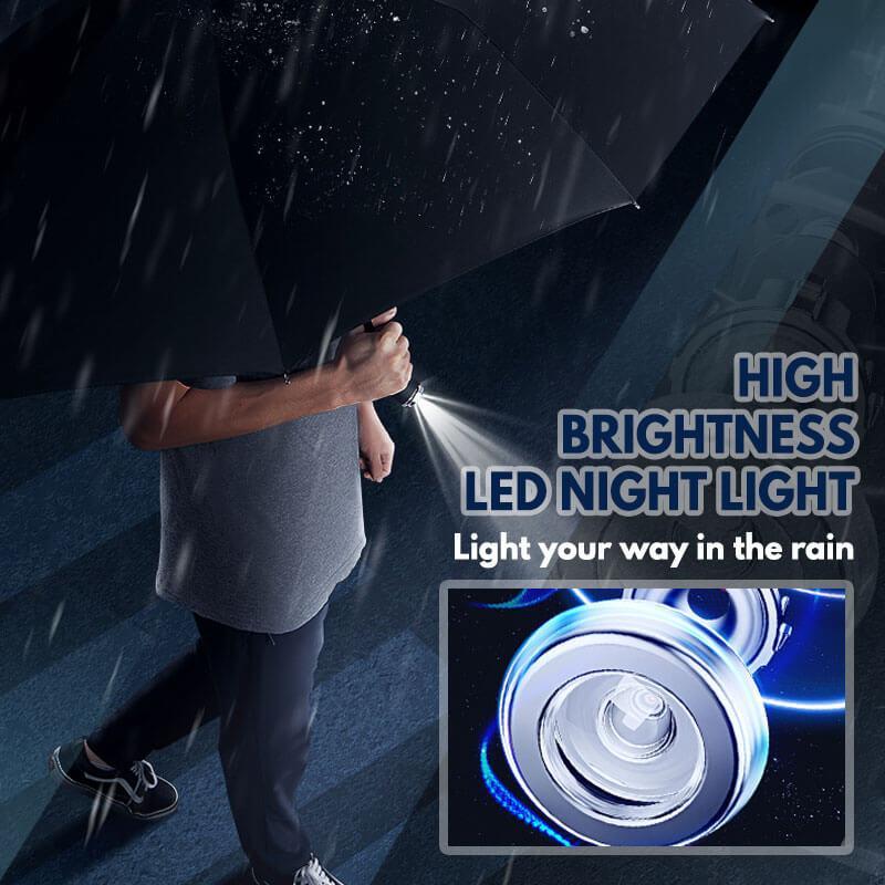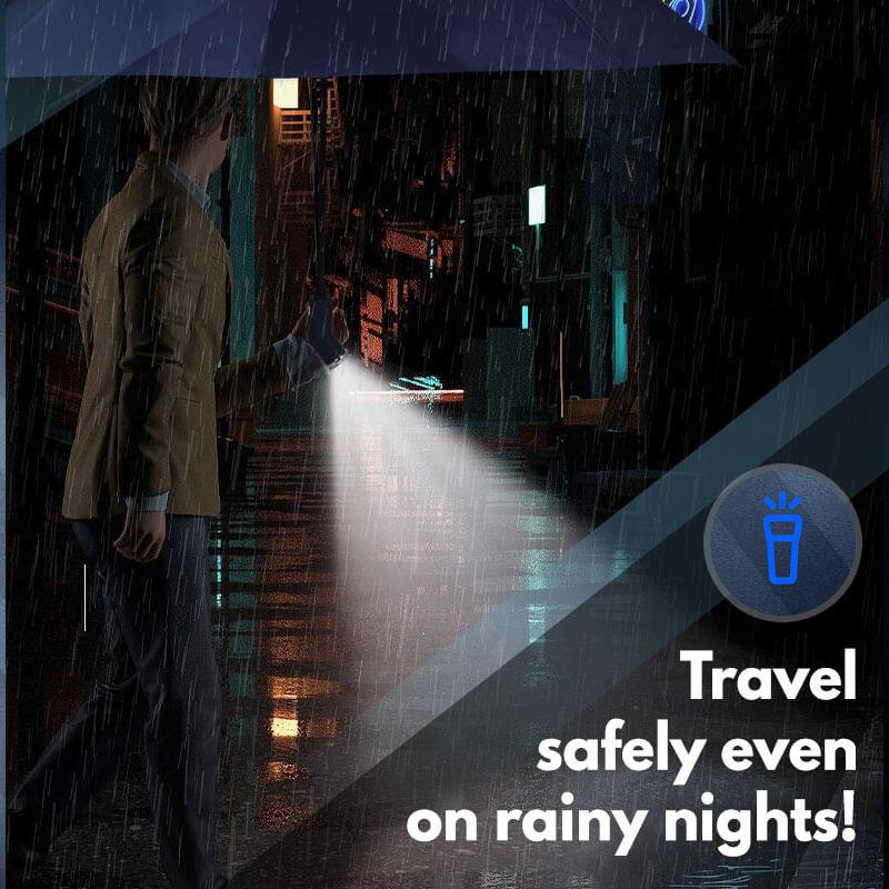 Are you still afraid to walk on a rainy night? Windproof LED Sun & Rain Umbrella with safety upgrade and high-intensity night light illumination to keep away from all dangerous situations. Highly visible night LED light for night illumination and the 180 ° rotatable angle at the handle illumination for safety on rainy nights.