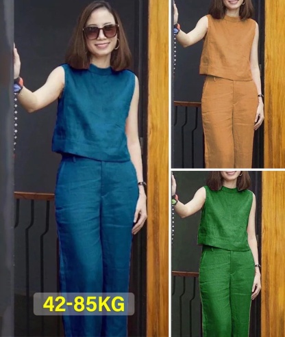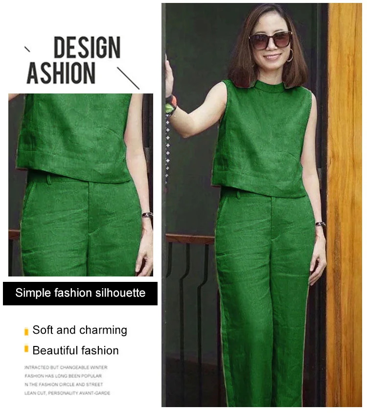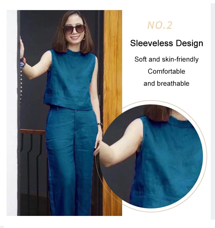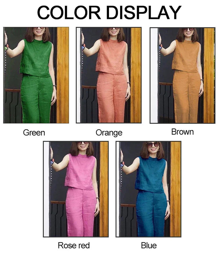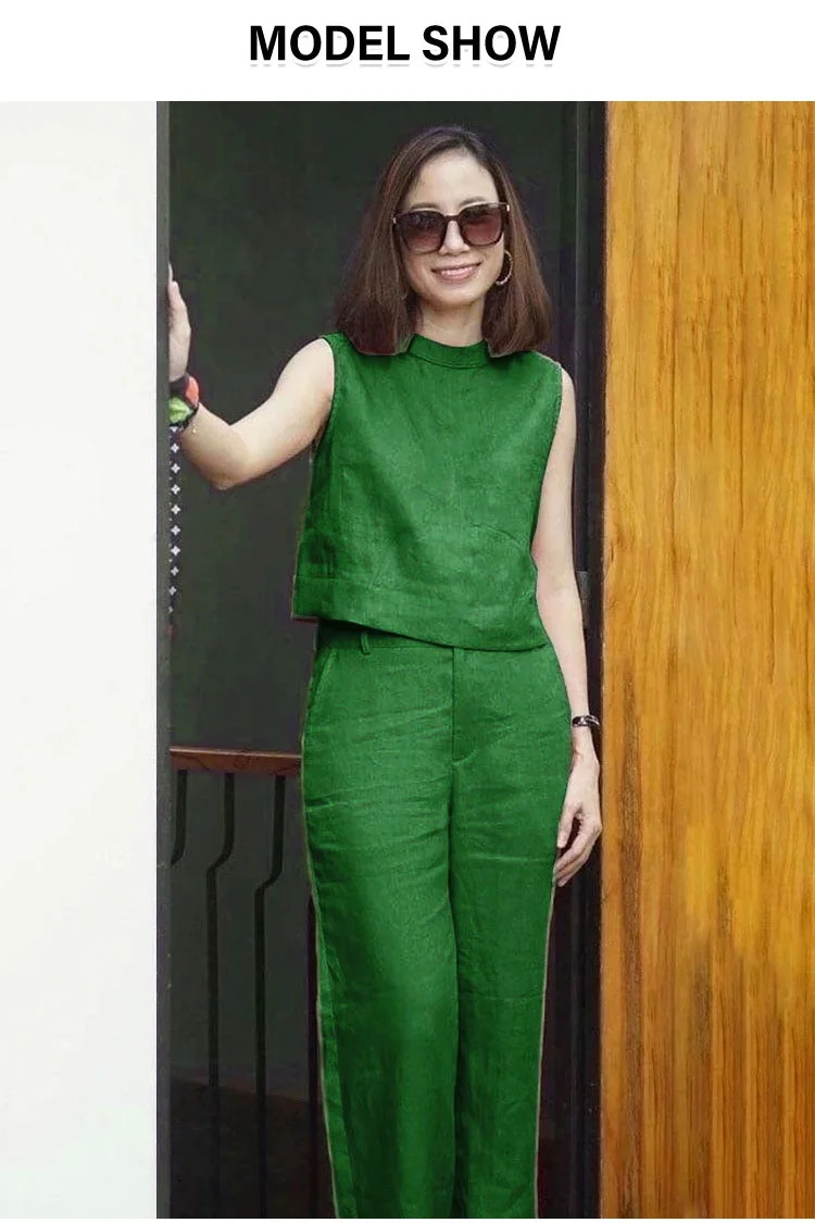 Female Solid Color Sleeveless Casual Cotton Linen Suit